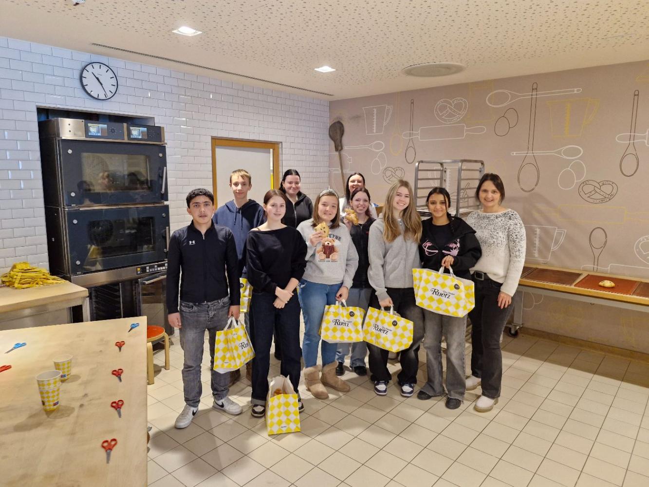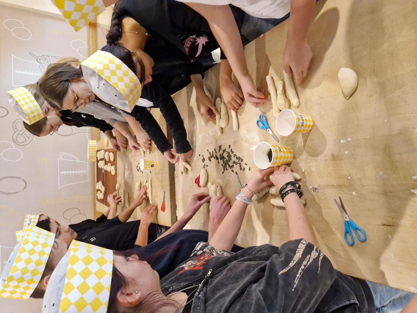 Karin hat uns herzlich empfangen und in die Backstube geführt, wo wir verschiedene Techniken der Bäckerzunft ausprobieren durften.