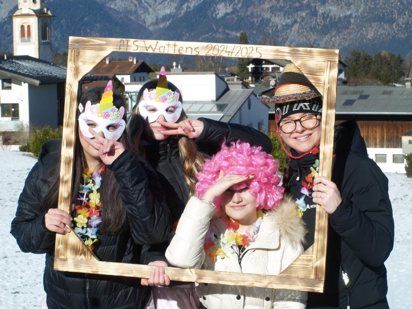 Zusätzlich gab es noch einen eigenen Tisch mit dem PTS-Wattens Faschings-Fotorahmen mit verschieden Verkleidungsmöglichkeiten.